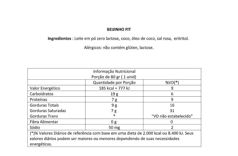 Leite em pó zero lactose, coco, óleo de coco, eritriol.