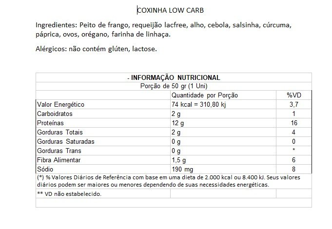 Peito de frango, requeijão lacfree, alho, cebola, salsinha, cúrcuma, páprica, ovos, orégano, farinha de linhaça. 4 unidades