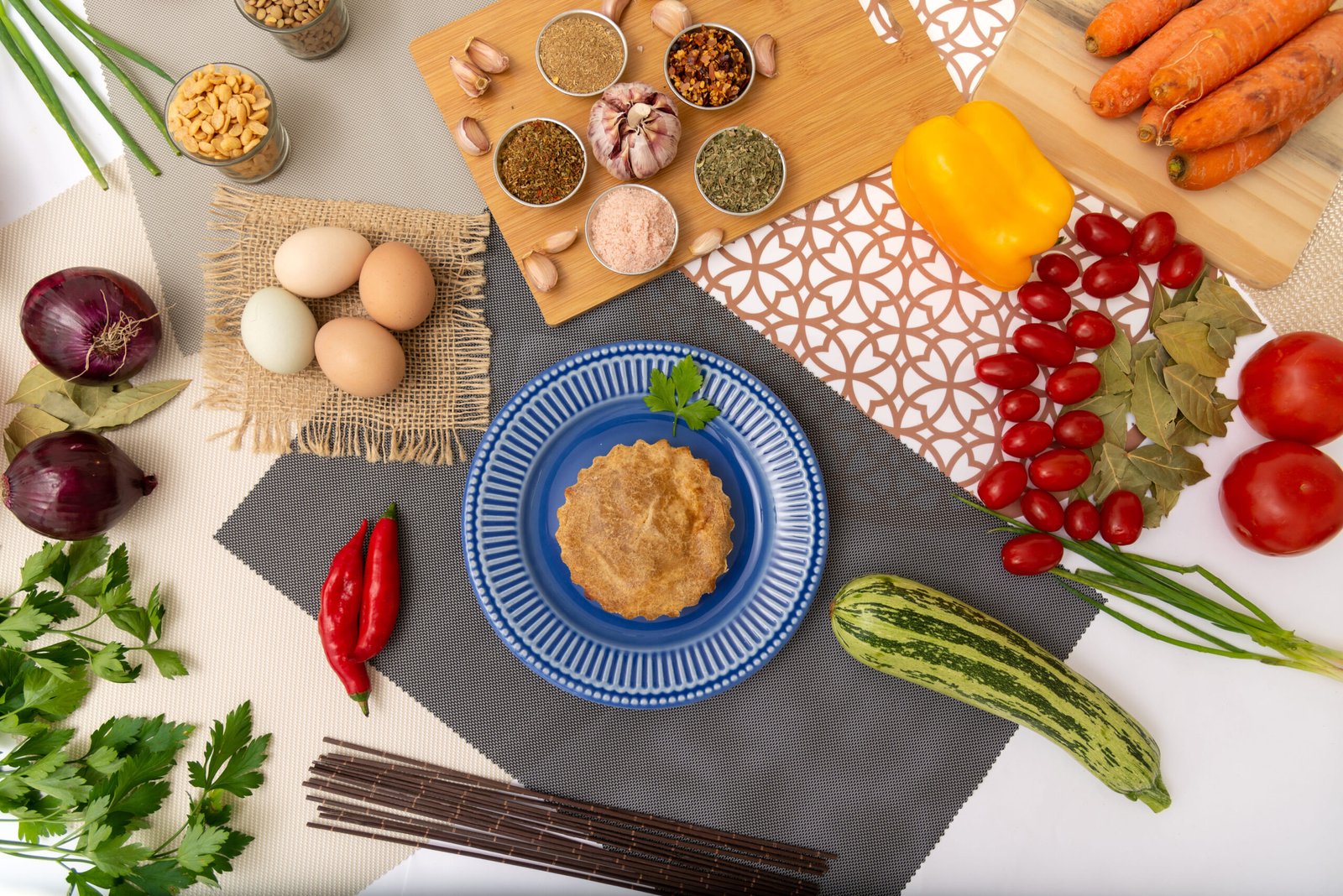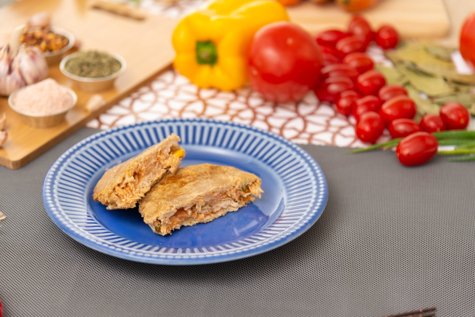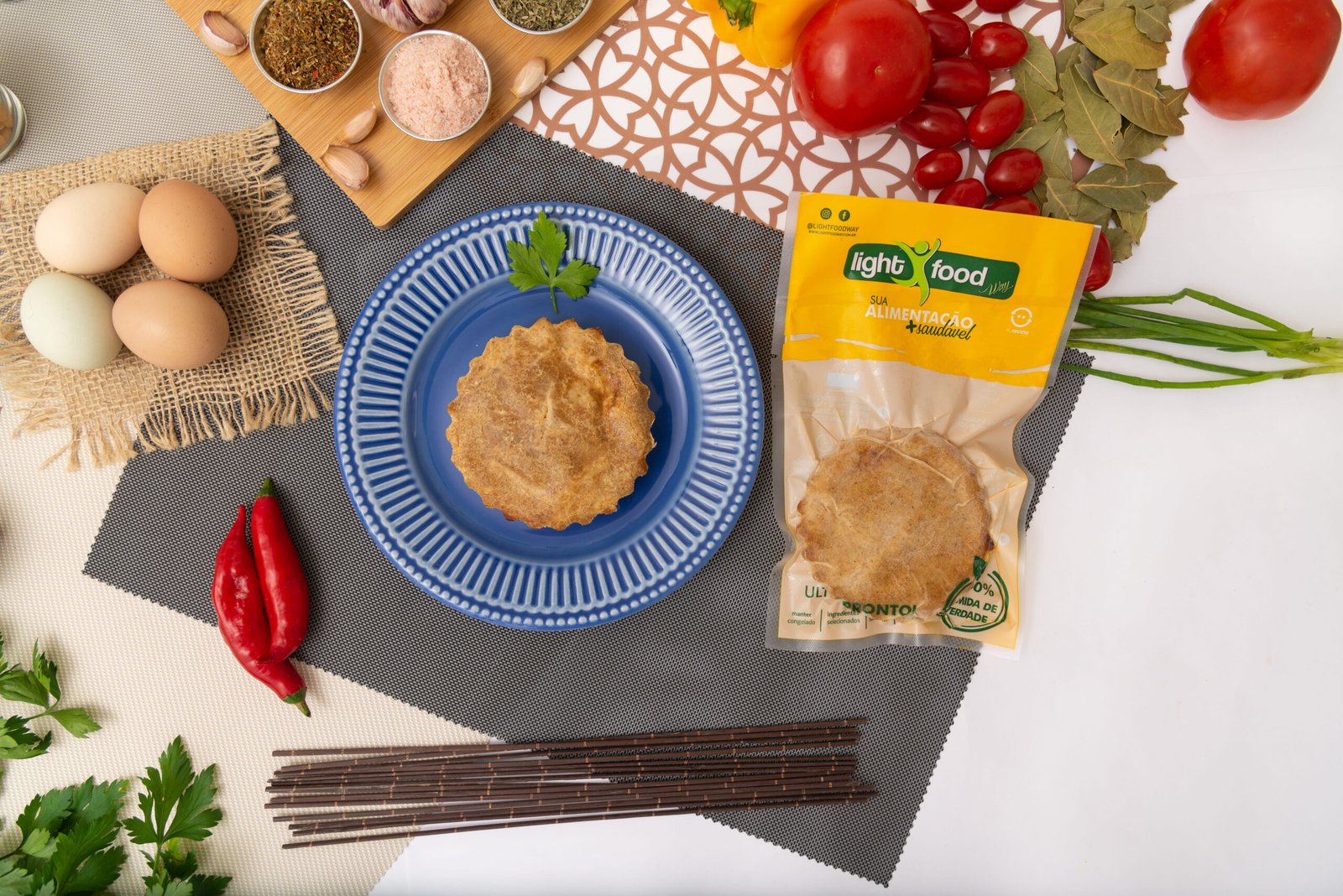 Farinha de aveia, creme vegetal, ovos, peito de frango, molho de tomate, ervilha, milho, cebola, alho poró, amido, sal rosa.
