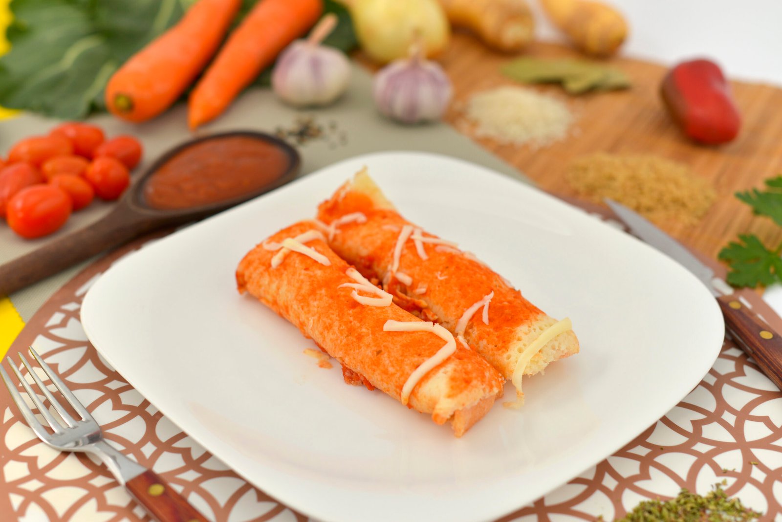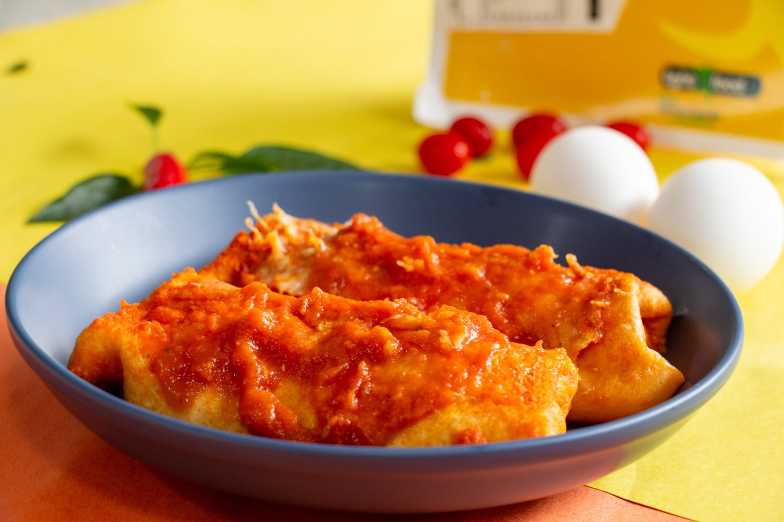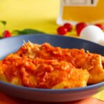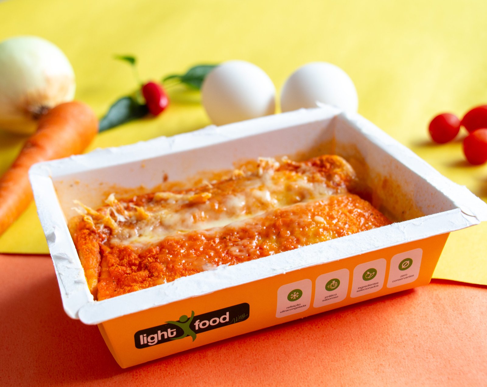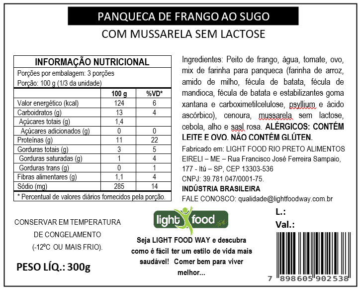 Panqueca de frango, requeijão ao sugo, mussarela sem lactose.