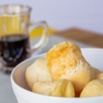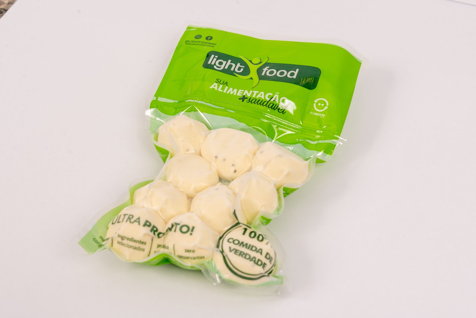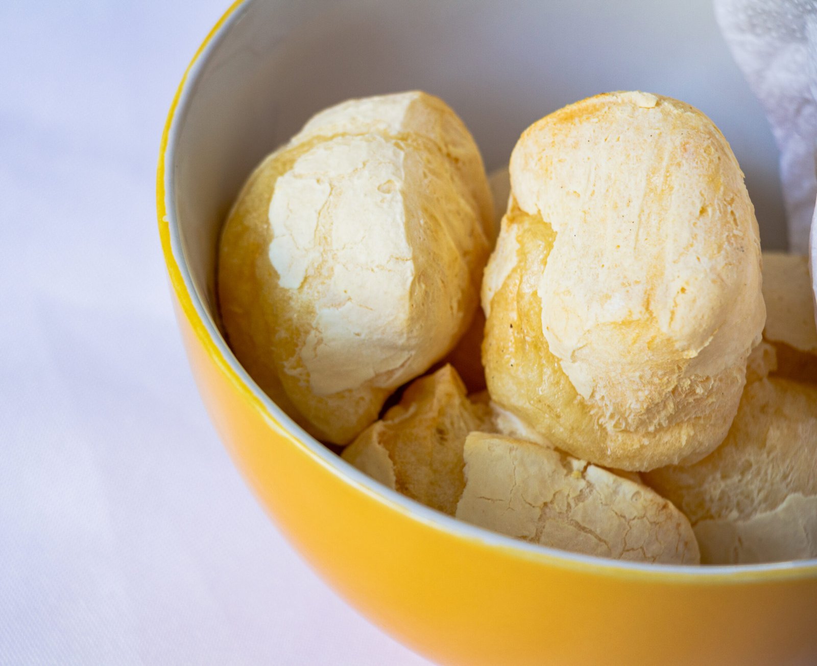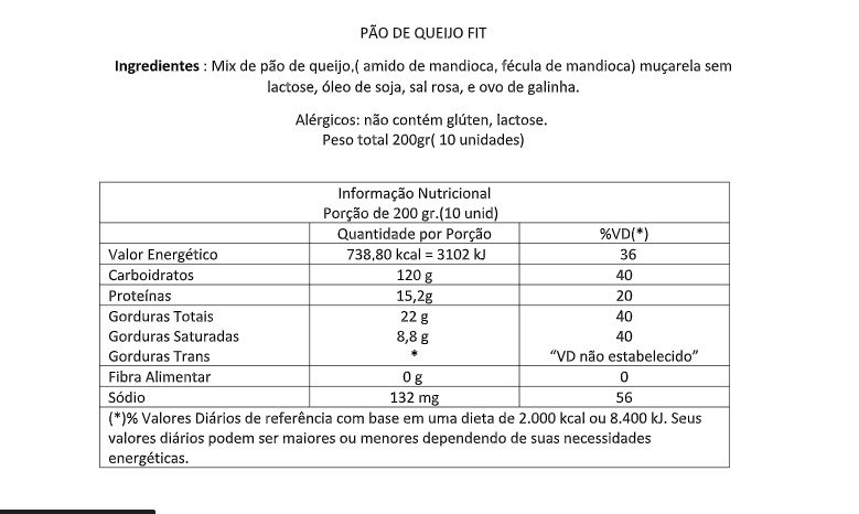 Mix de pão de queijo, muçarela sem lactose, óleo de soja, sal rosa, ovos.